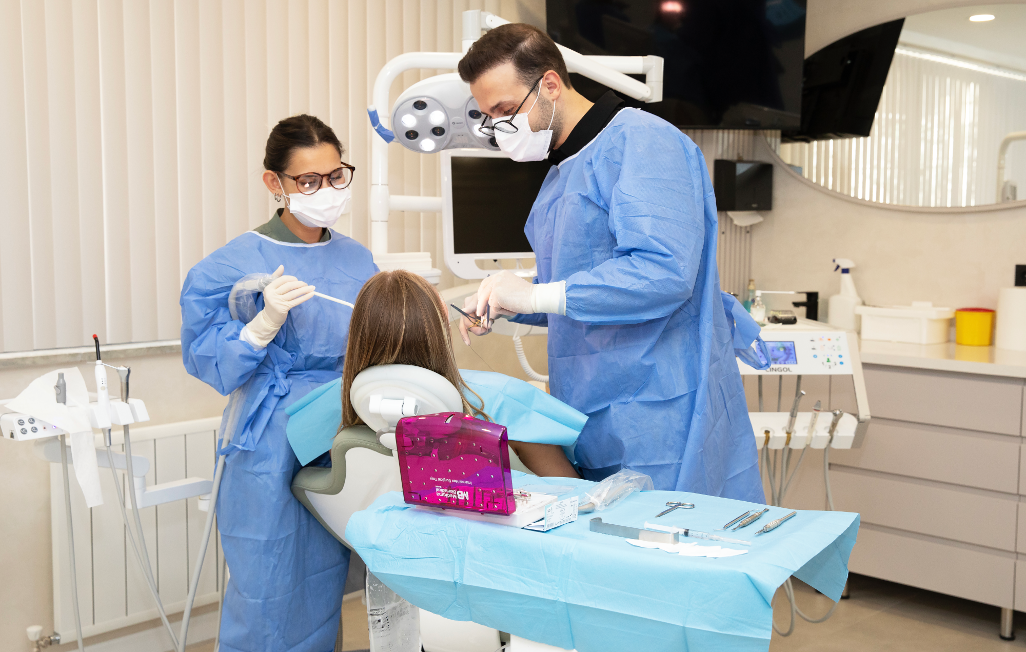 Cerrahi tedavilerimiz; diş çekimi, gömülü diş operasyonları, implant uygulamaları, sinüs lifting ve apikal rezeksiyon gibi pek çok işlemi kapsar. Amaç; ağrıyı gidermek, enfeksiyonu kontrol altına almak ve fonksiyon ile estetiği uzun vadede korumaktır. Tedavi planı, muayene ve gerekli görüntülemeler (röntgen/tomografi) sonrası kişiye özel hazırlanır.